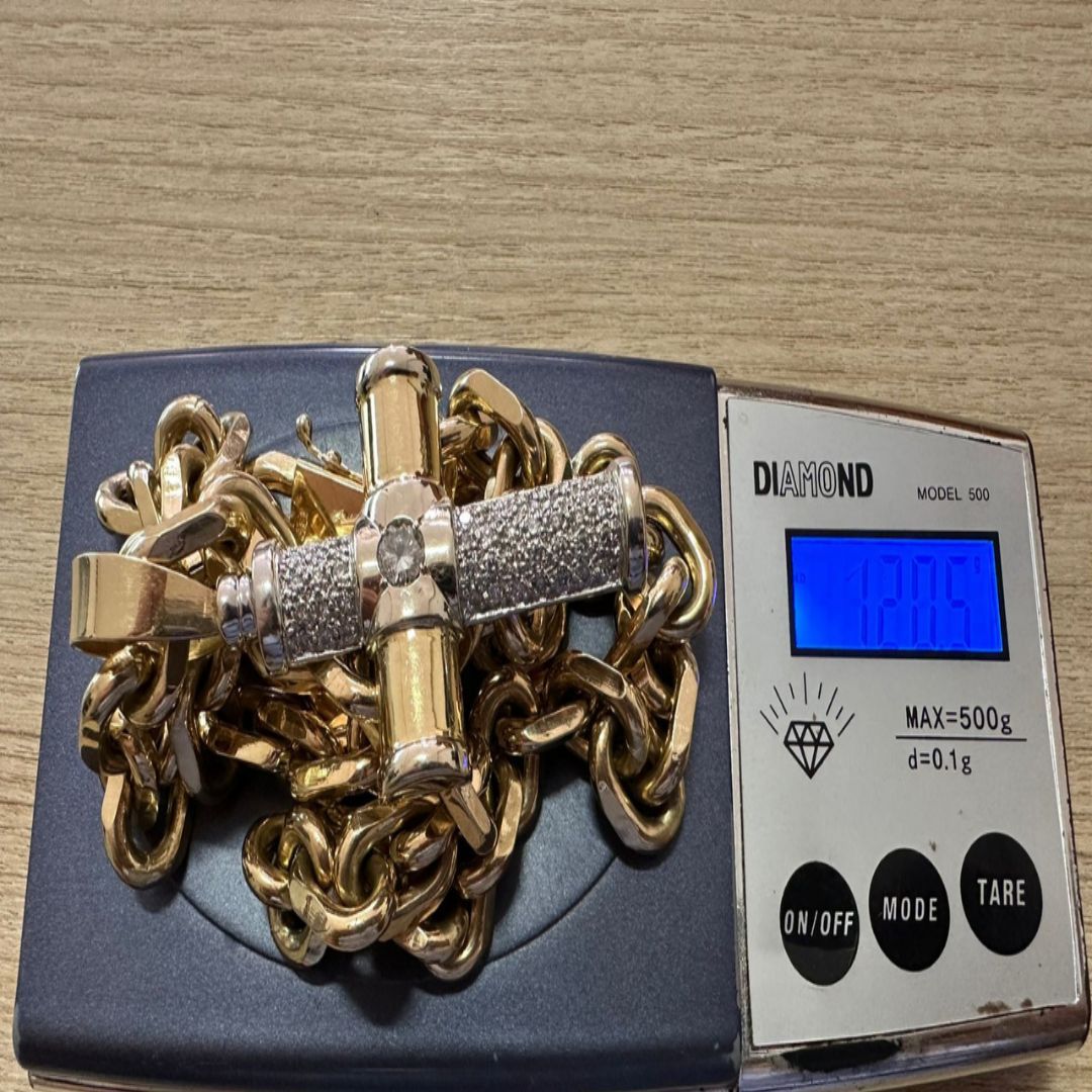 São 120Gramas de ouro 1 Quilate de diamante 0.75ct total 0.03ct total de diamante Total de 50 pedras